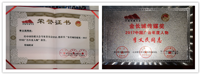 首页传媒受邀参加大会,并斩获“金长城传媒奖·2017中国十大传播力户外传媒”奖项,董事长李义民先生获得“金长城传媒奖·2017中国广告年度人物”奖。